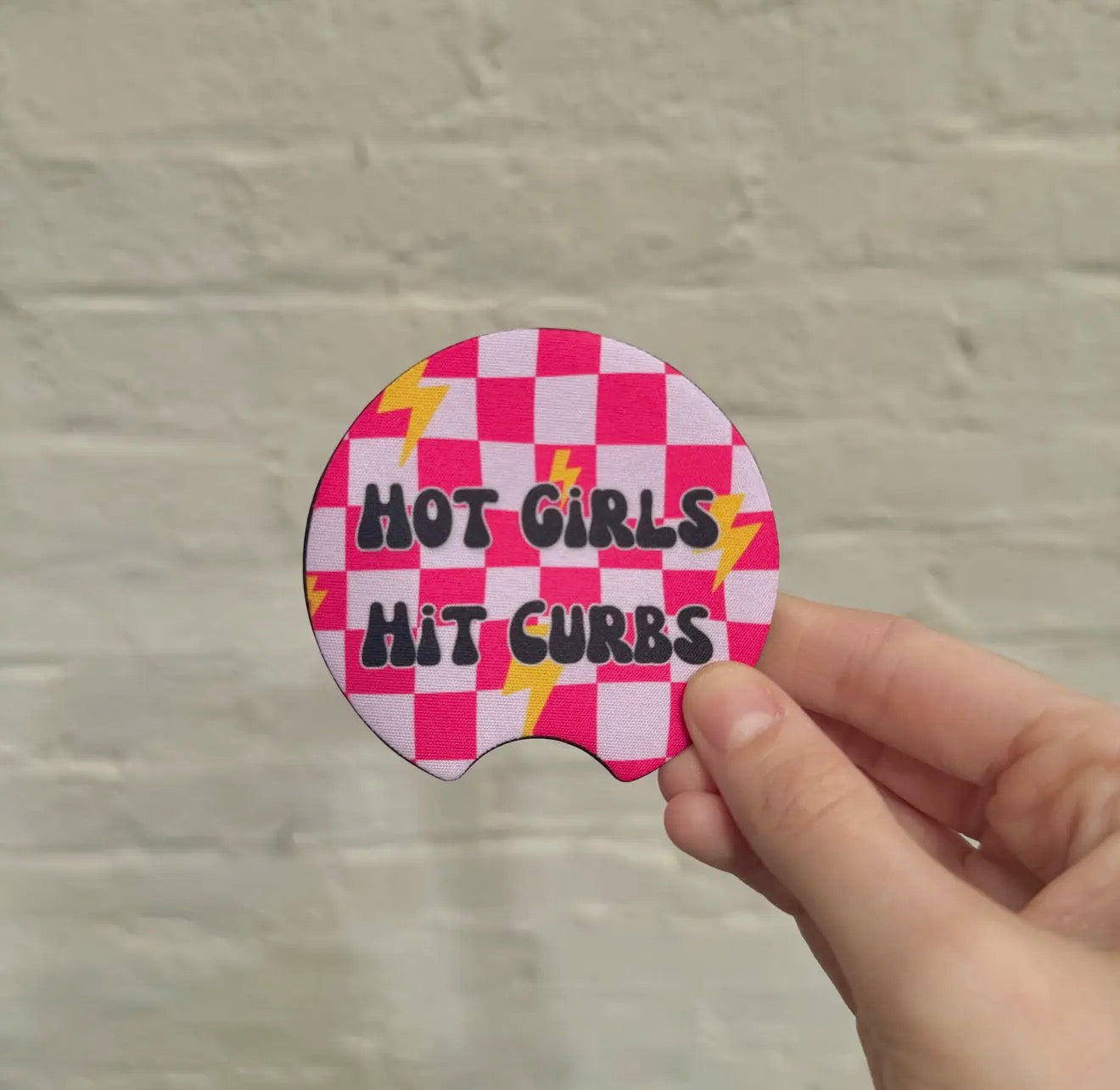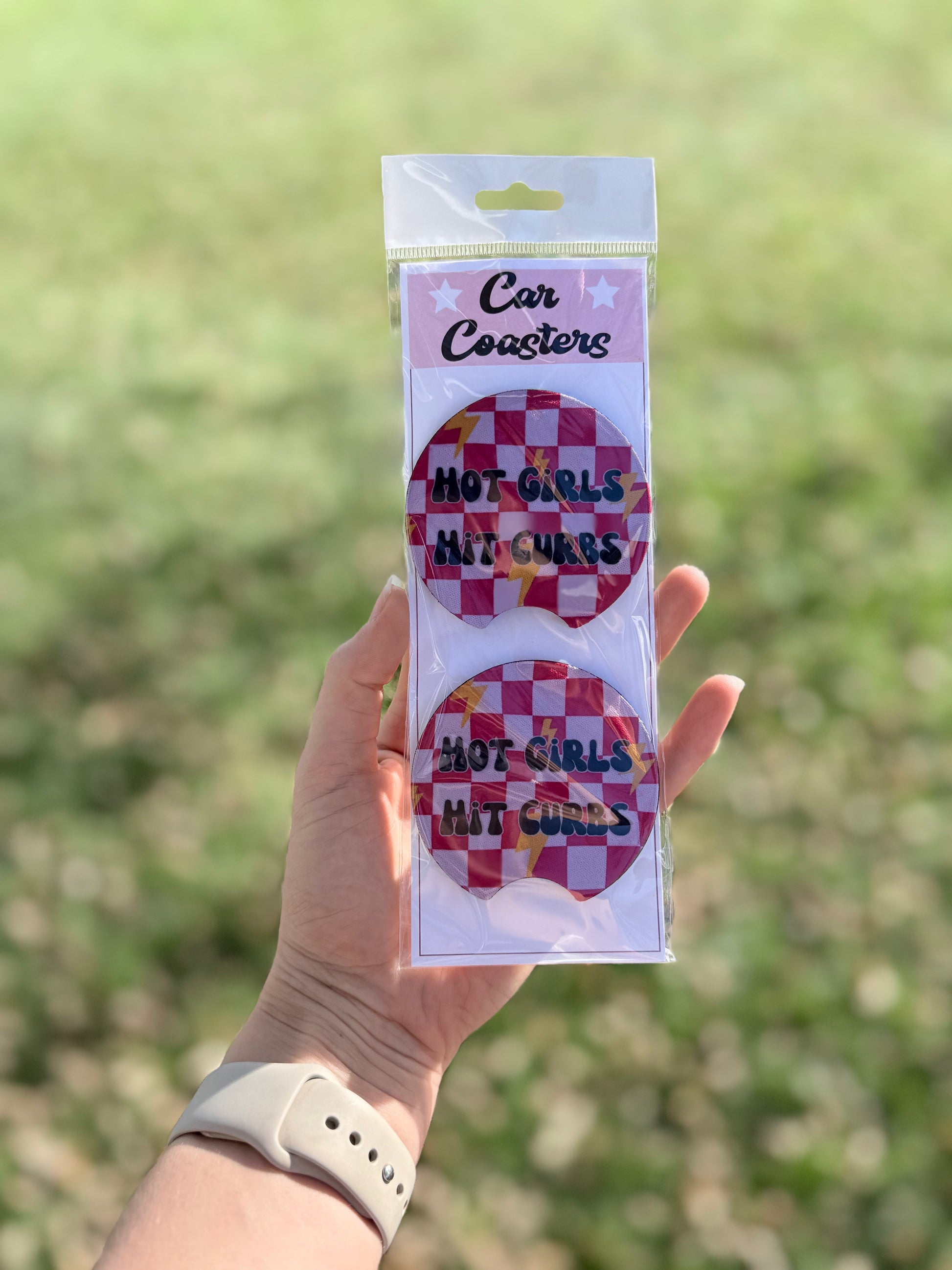 2 come in a pack! These car coasters are super absorbent! Printed directly into the surface for a long lasting coaster. Cloth top (mouse pad material), with black rubber backing.